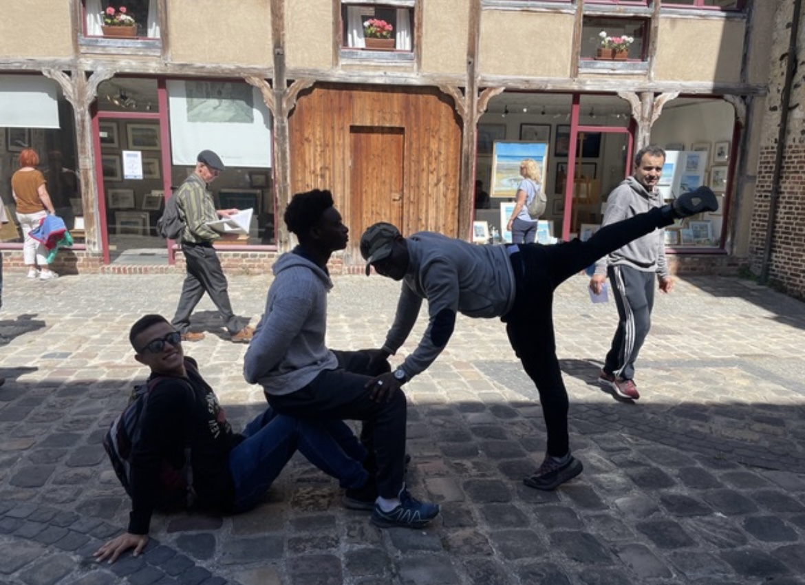 S’il fallait une nouvelle fois illustrer la capacité du sport à rassembler au-delà des différences sociales et culturelles, il suffisait de regarder le week-end du 12 juin 2022 du côté de Honfleur où plus de 40 personnes, UpSportifs et étudiants de la Maison Heinrich Heine de la Cité Internationale Universitaire de Paris ont partagé une journée sportive format XXL. Fait remarquable, le départ très matinal n’a découragé personne et les inscrits ont tous répondu présents… mais il s’en est fallu de peu pour que Hadayatullah, Waseem et Souleyman manquent le bus, les deux premiers s’étant trompés de lieu de rendez-vous et le troisième ayant attendu vainement son train à Fresnes depuis 5h du matin. Passées ces péripéties initiales, le bus a pris avec quelques minutes de retard la route de la Normandie. À nous les flots bleus et les colombages.