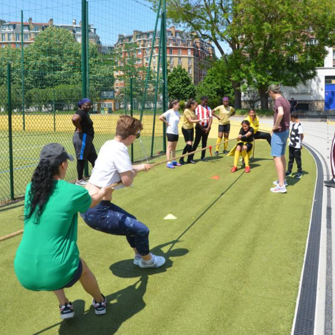 Les arrivées dispersées nous ont fait redouter brièvement une participation fluette. Mais à 14 :00, l’échauffement en musique a dissipé les quelques craintes en même temps qu’apparaissaient les sourires épanouis des femmes rassemblées sur le plateau. Puis ce fut place aux mini-olympiades par équipe : béret, tir à la corde, relais en marche athlétique, auquel ont succédé des duels de sprints réclamés par les plus jeunes, initiation au judo… de quoi satisfaire pas mal d’envies et valoriser les capacités différentes de chacune. 👟