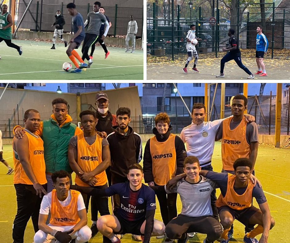 Depuis juin, notre association organise des séances d’activités sportives avec la structure Coallia. À la demande des jeunes hébergés, celles-ci sont devenues hebdomadaires et, depuis septembre, tous les mercredis de 14h30 à 17h, nous nous retrouvons autour d’un ballon rond sur le terrain couvert du quai de là Loire.